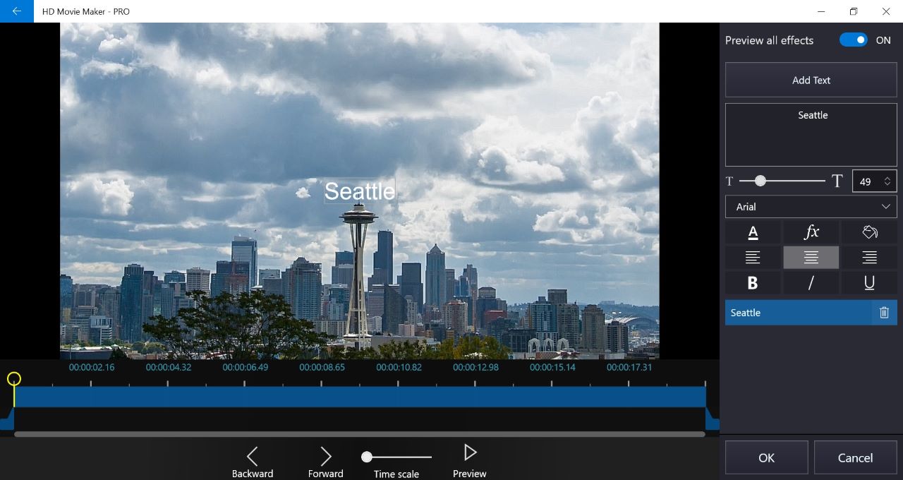 - For more precision while adjusting the start or the end of the timeline, use the Backward/Forward button to adjust them one frame backward/forward