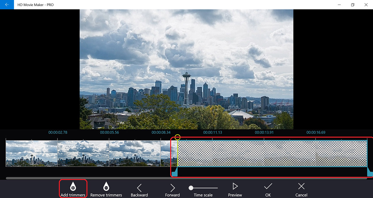 Tips: The Time scale slider can be used to change the time scale of the timeline which will help you change the trimmers position more precisely.
