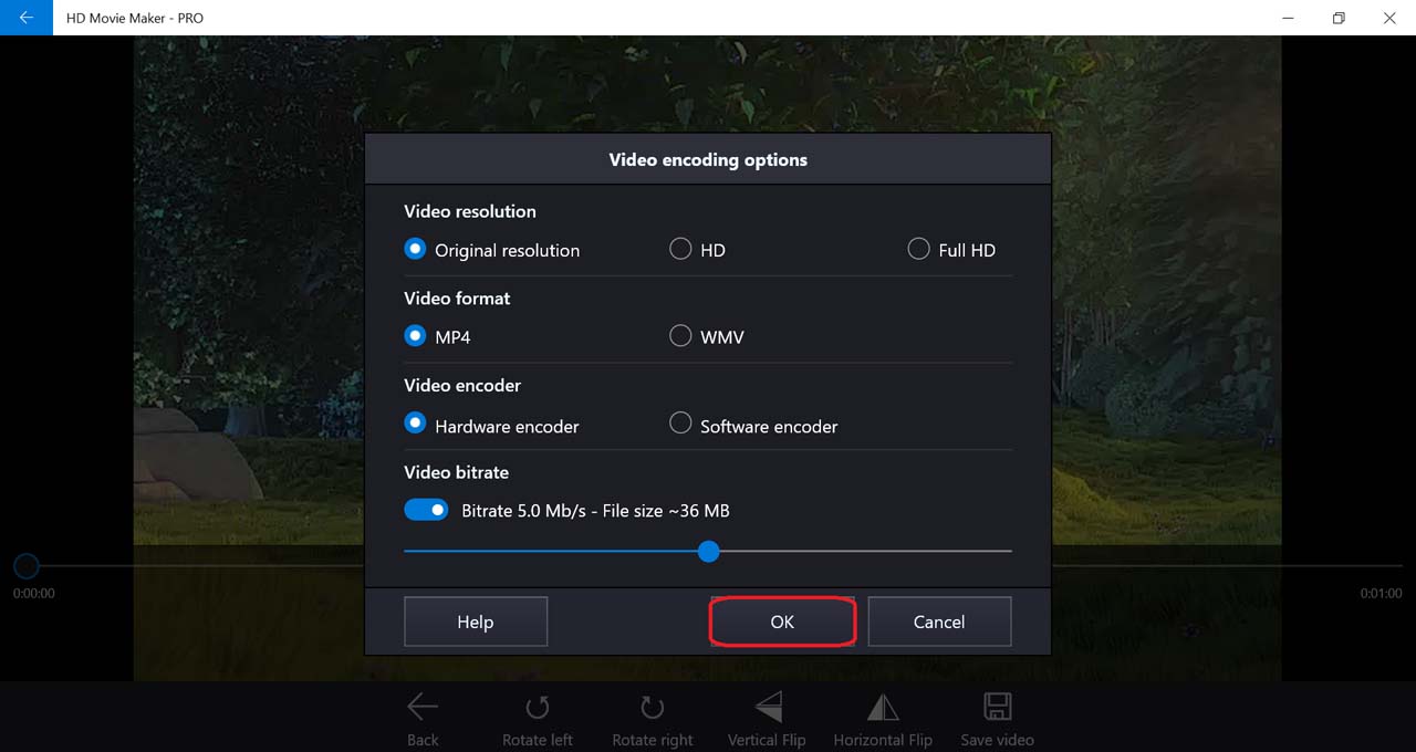 Select output movie settings, then press OK.