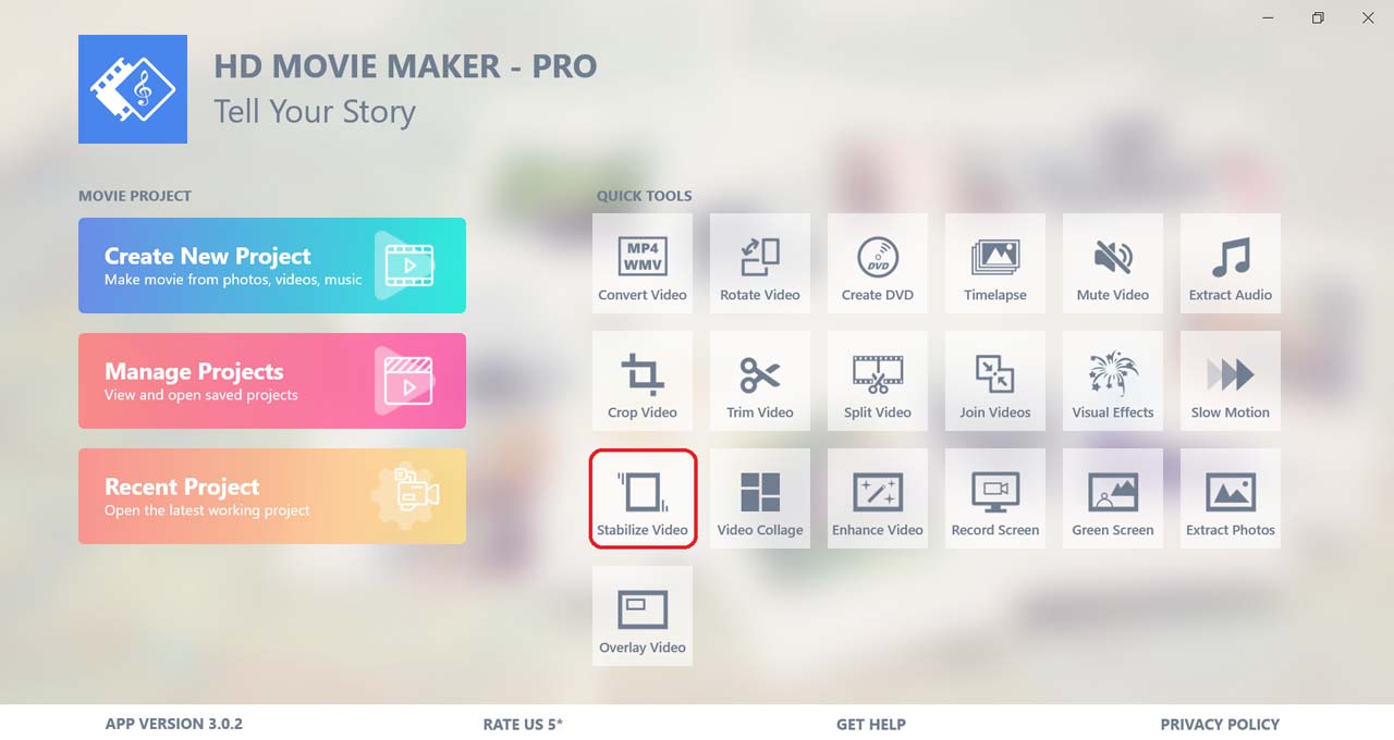 This Stabilize video tool is used to stabilize a shaky video clip.