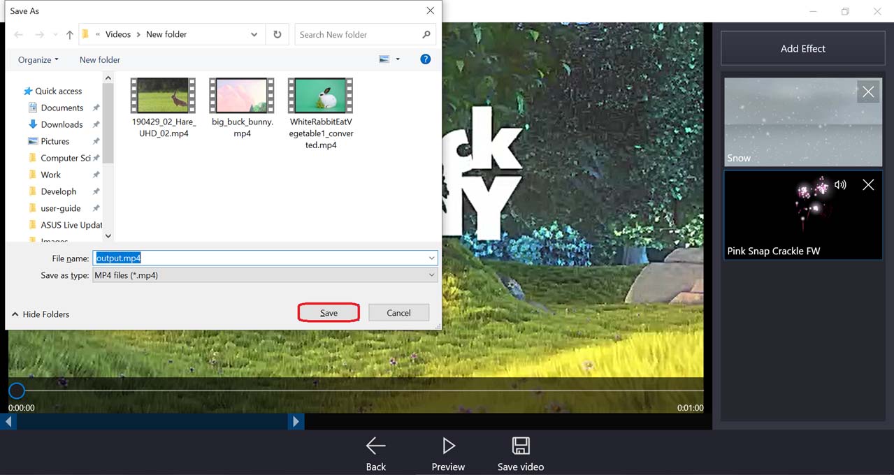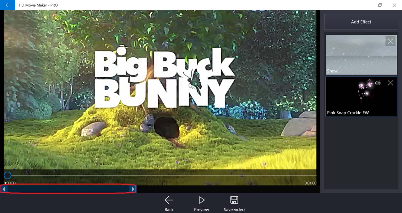 To add an effect, select Add Effect, then choose the effect you want. HD Moive Maker provides over 15 effects for you to choose from. You can add multiple effects to your video.